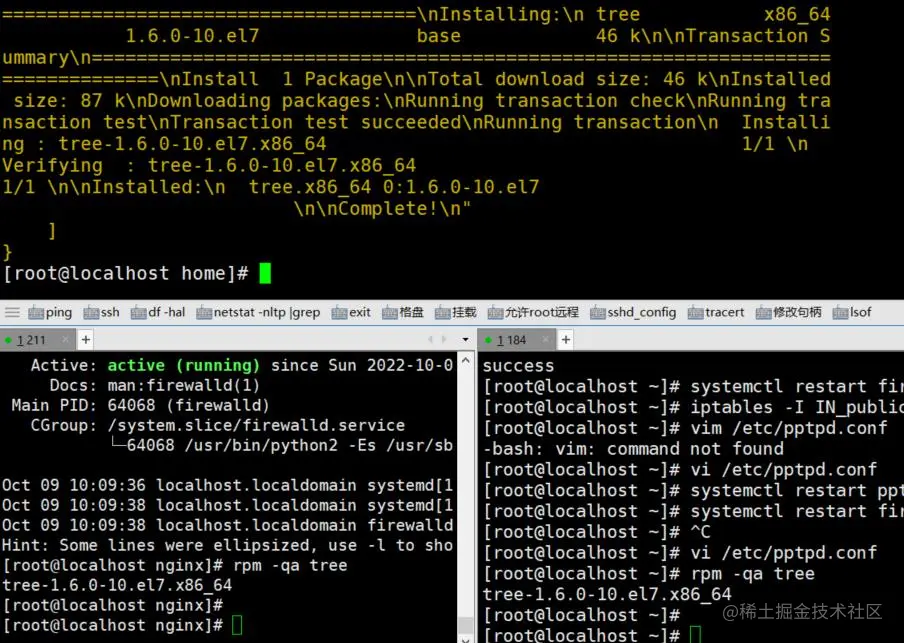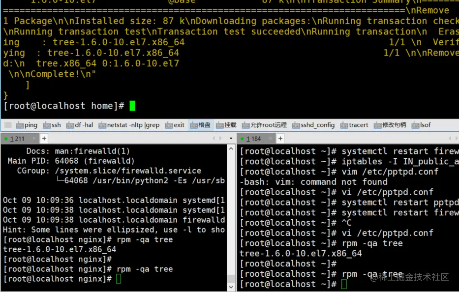 在管理机上使用yum模块控制两台被管理机卸载tree软件