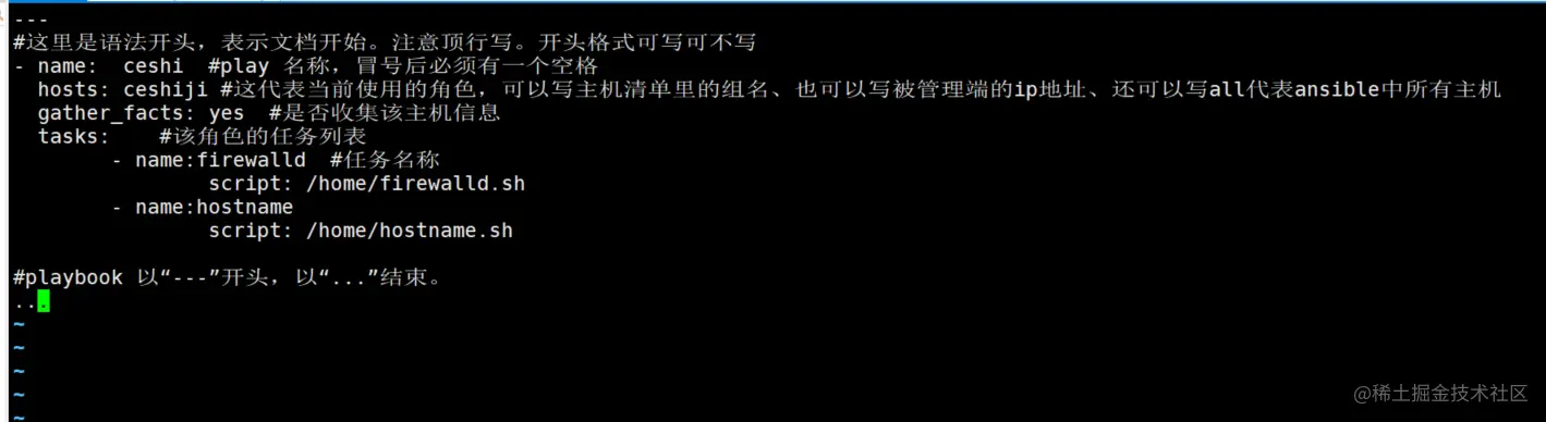 playbook字母意思是剧本,剧本里写清楚了哪个演员什么时候应该说什么台词、做什么动作、展现什么神情等,电影、电视剧是按照剧本来拍摄的。Ansible 里的 playbook 作用就跟拍电影的剧本一样,把要执行的命令、任务在 playbook 里编排好,然后 Ansible 执行这个 playbook,Ansible的“电影”就这样“拍摄”完成了。由此可见,掌握 playbook 的编排对于掌握 Ansible 的应用有多重要!电影剧本有分幕、场(景)、镜等结构,Ansible 的 playbook 也分结构,类似于: