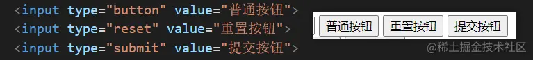 普通按钮(type=button) :使用value属性设置按钮文字