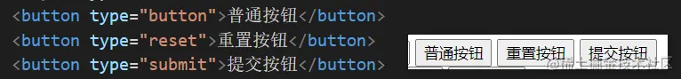 重置按钮(type=reset):重置它所属form的所有表单元素(包括input、textarea、select)