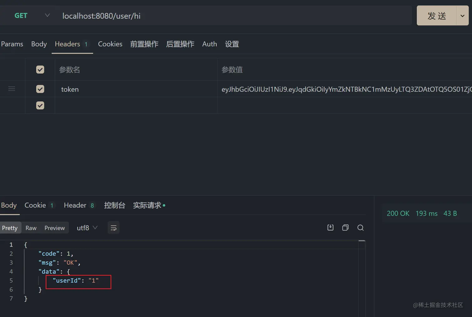 在前一篇文章我们进行 jwt+token 登录校验时,token 中保留的信息是用户 ID。当我们在其他请求中需要当前登录的用户 ID 时,就需要解析 token,我们可以这样做: