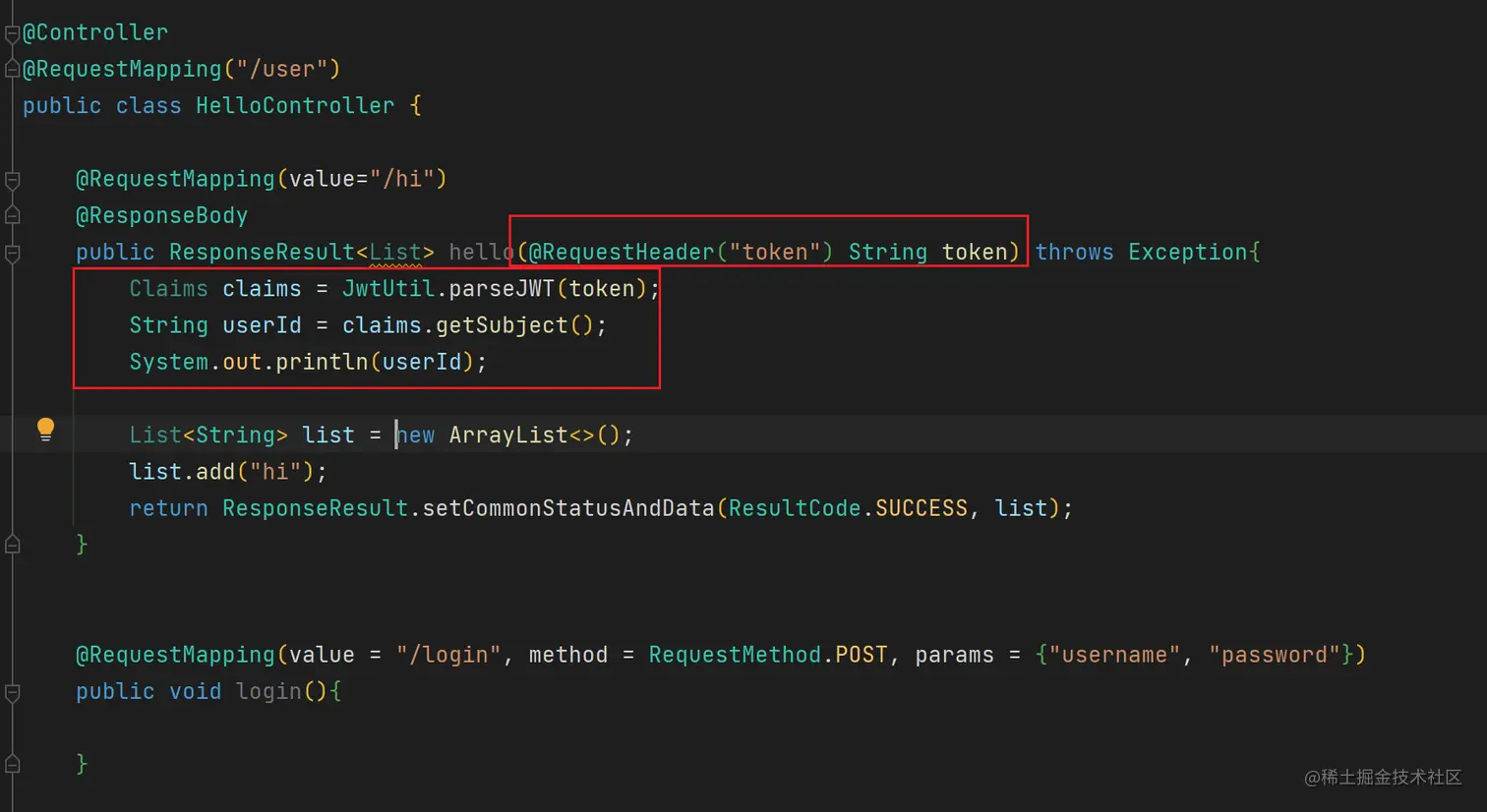 但是出现了一个问题,当我们有许多接口都要获取用户 ID,那么都需要写一遍解析 token,获取用户 ID 的代码。难道我们在需要获取 token 的方法中都写一遍重复代码,没有一种像 SpringMVC 提供的形参自动注入功能呢?
