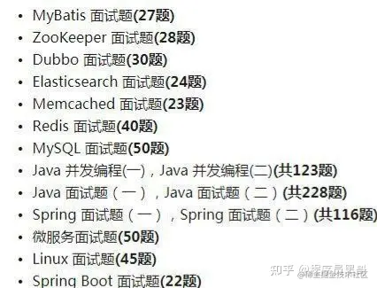 我也花费好几个月收集整理了各大厂常见面试题N道,你想要的这里都有内容涵盖:Java、MyBatis、ZooKeeper、Dubbo、Elasticsearch、Memcached、Redis、MySQL、Spring、Spring Boot、Spring Cloud、RabbitMQ、Kafka、Linux等技术栈!!!