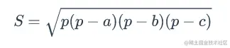 s = pow(p * (p - a) * (p - b) * (p - c), 0.5)