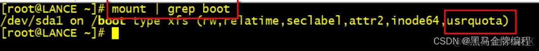 重启之后就发现/boot目录已经支持quota磁盘配额技术了。
