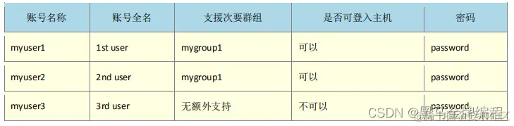 要注意的地方主要有:myuser1 与 myuser2 都有支援次要群组,但该群组不见得会存在,因此需要