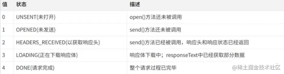 关于XMLHttpRequest.readyState属性有五个状态,如下图显示