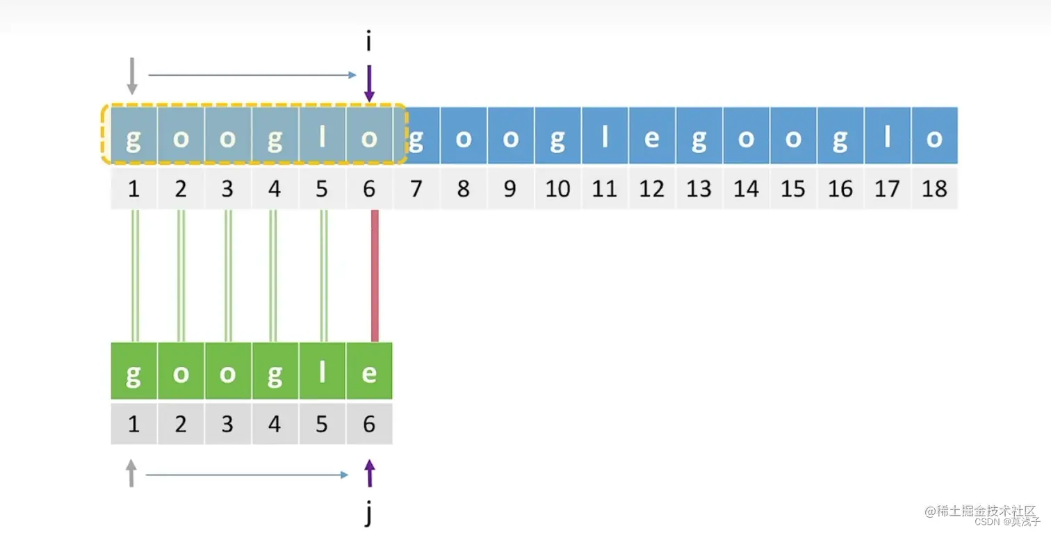 举个例子如下图,子串是google,主串是googlogooglegoolo