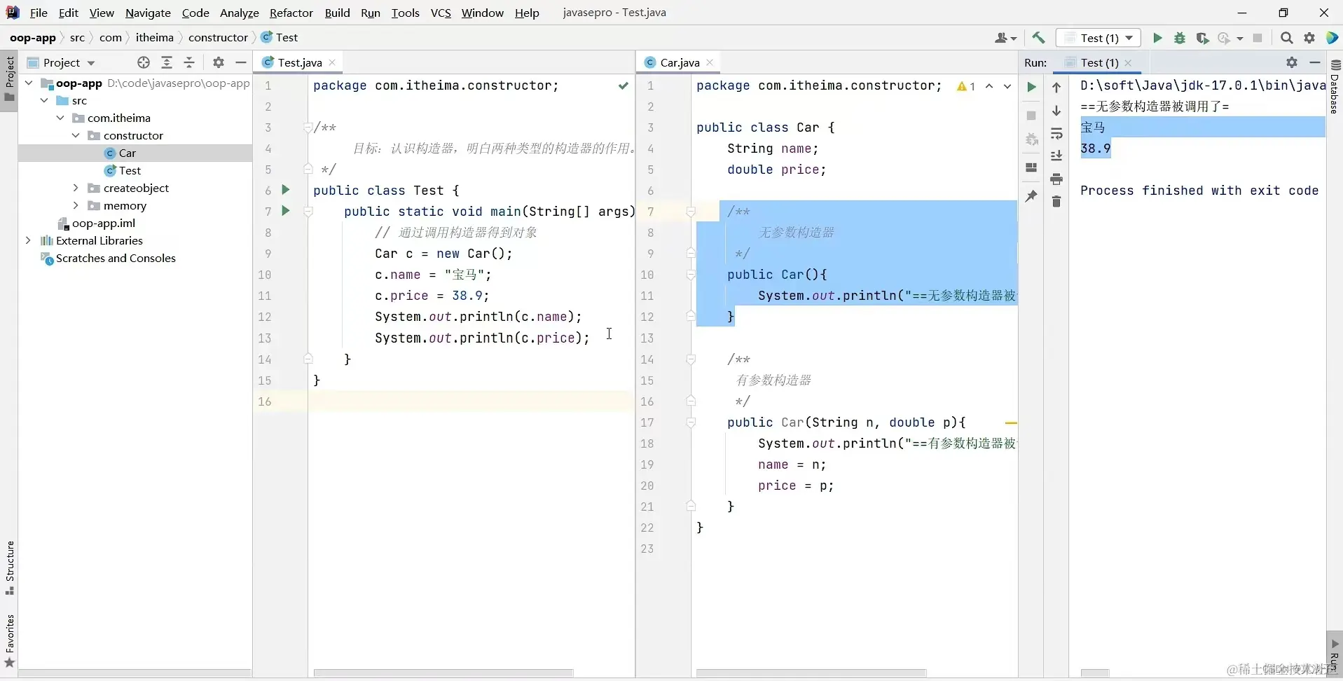 public Car(String name , double price){