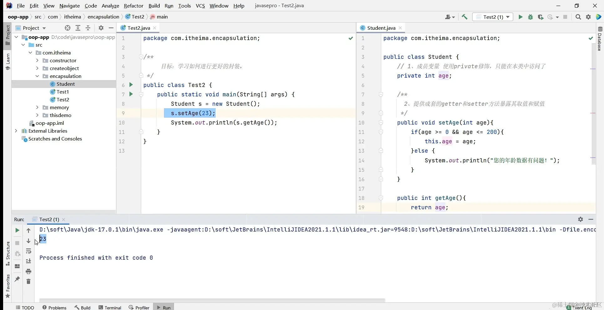 在赋值给一个学生年龄的例子中非常容易出现,入过学生的年龄错误了,为负数,仍然会继续输入,那么该如何修改呢,这是就需要封装,通过一定暴露和封装完成