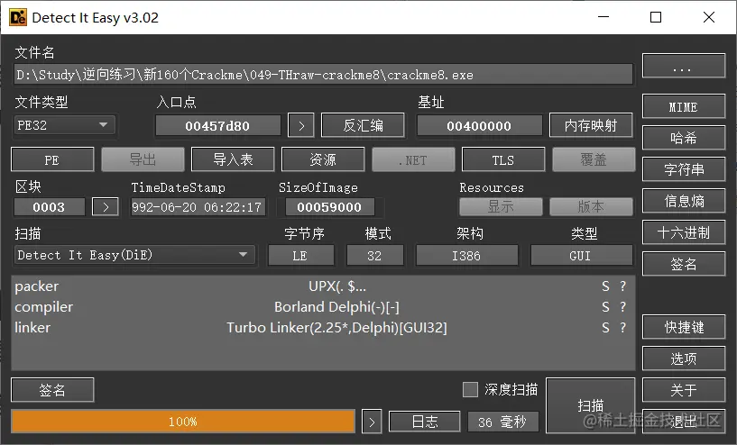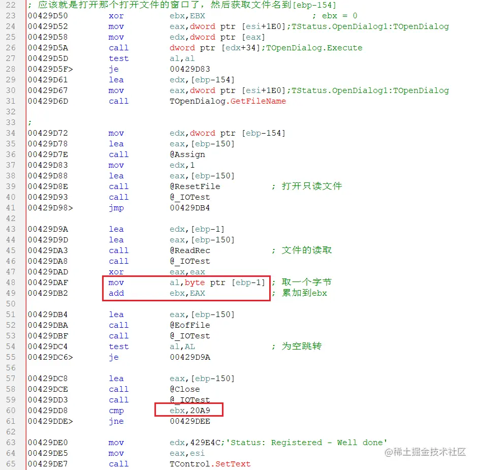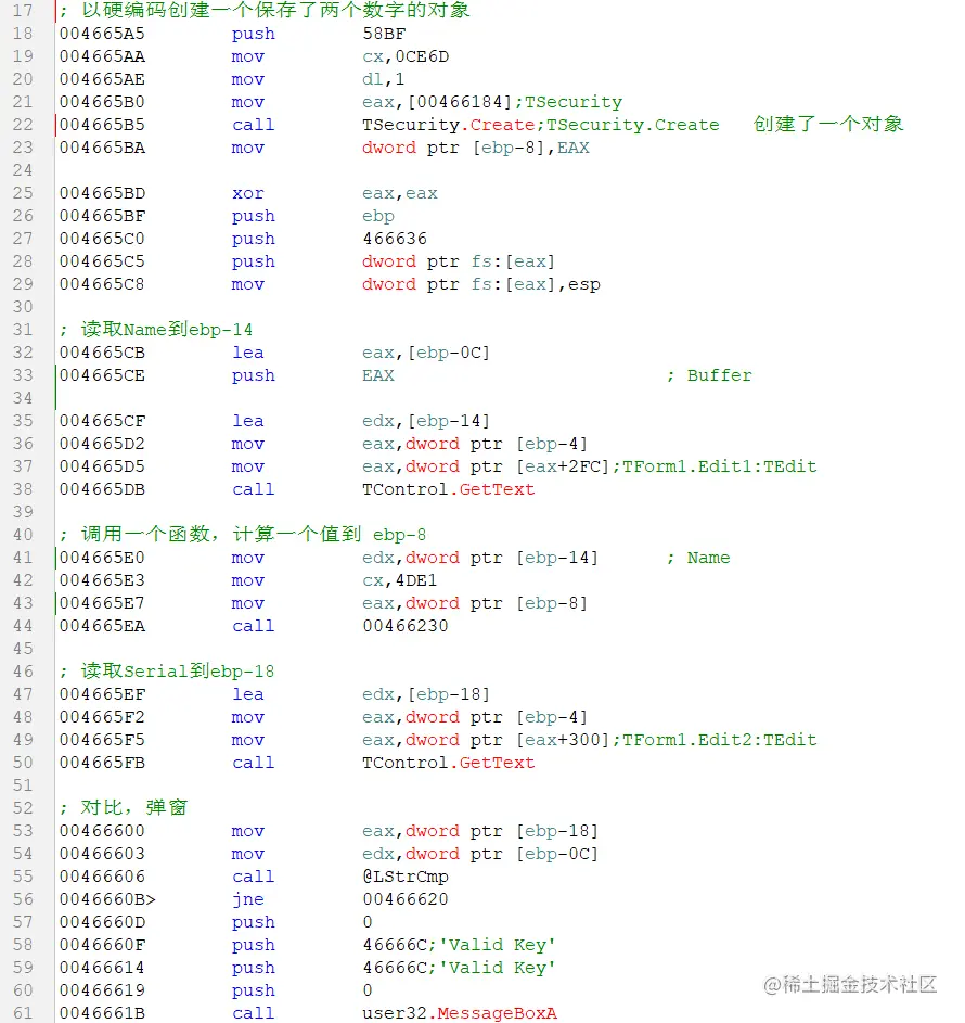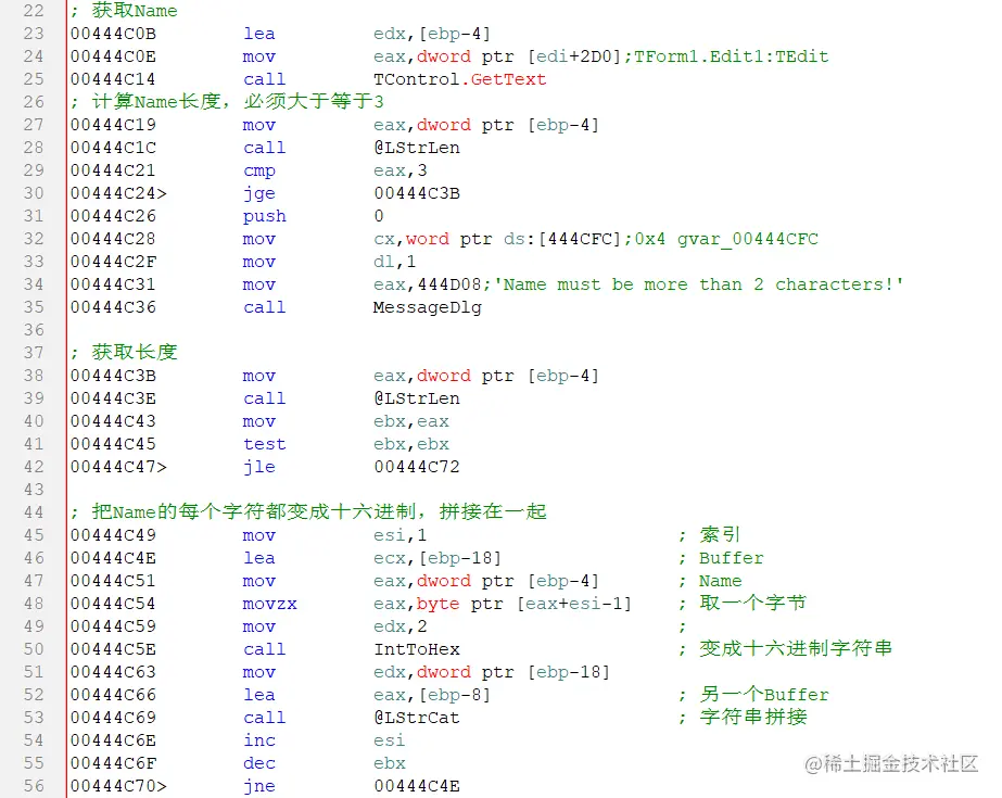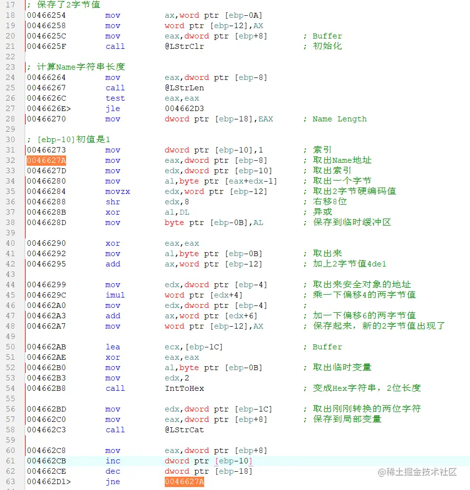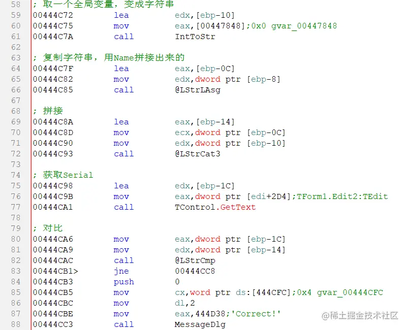 这里要注意,delphi使用的是32位的fastcall,传参顺序是eax,edx,ecx,栈,最后调用计算字符串的函数的时候,有一个栈中的参数