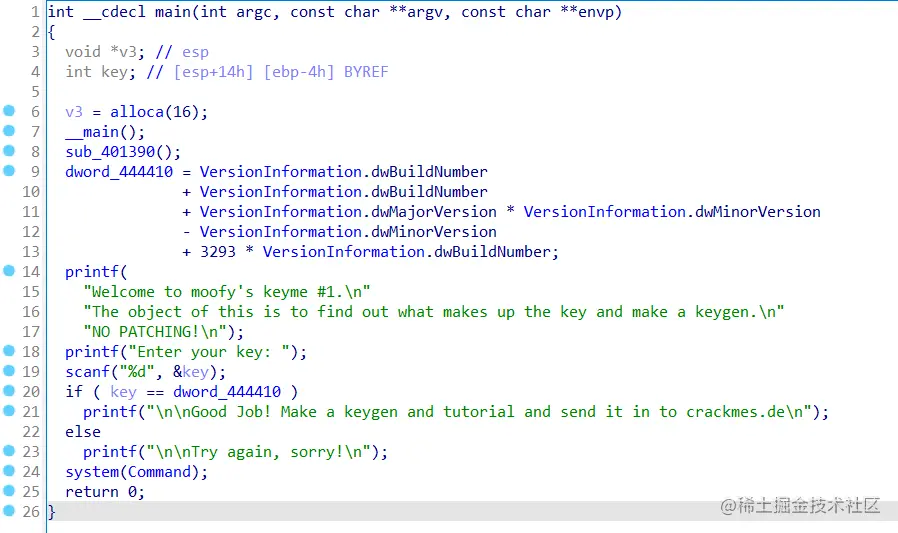 然后根据提示信息定位到反汇编,F5一下偷个懒: