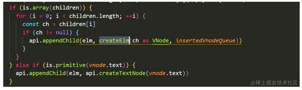 parentElm.insertBefore(createElement(newCh[i]), oldCh[oldStartIdx] ? oldCh[oldStartIdx].elm : null);