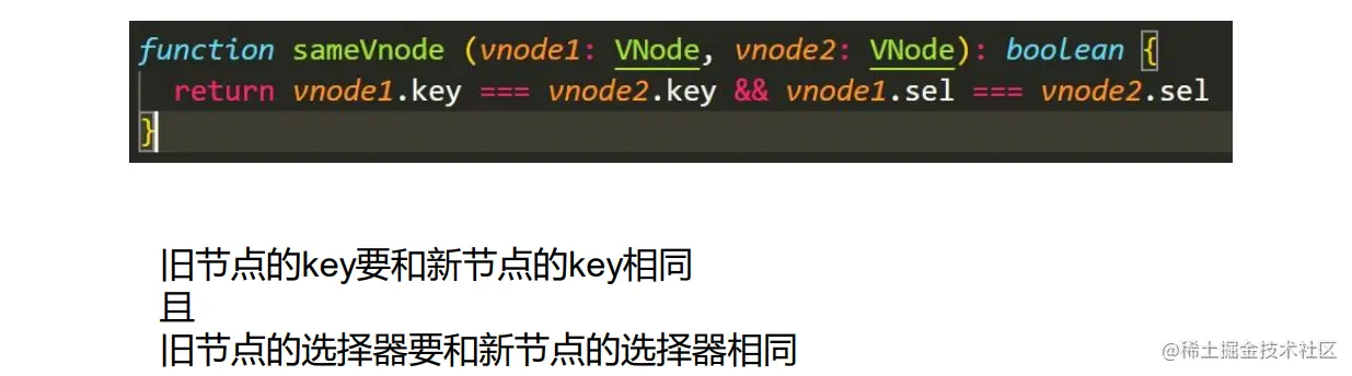 if (oldVnode.key == newVnode.key && oldVnode.sel == newVnode.sel) {