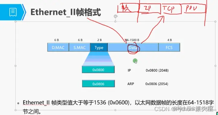 Ethernet_II帧类型值大于等于1536(0x600),以太网数据帧的长度在64-1518字节之间
