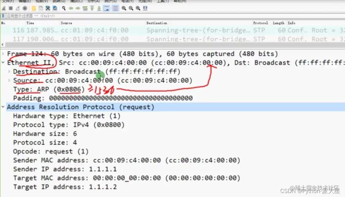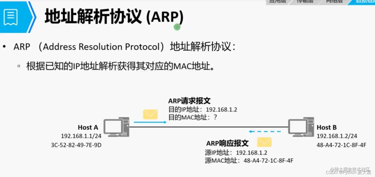 1、因为我们网络设备在第一次交换数据的时候,没有对方MAC地址。所以我们需要使用ARP来获取MAC地址。