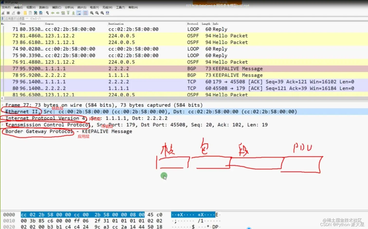 2、广播型链路(MA多路访问) : 允许链路上存在2个以上的接口,所以需要区别不同的接口,那么规定每个以太网接口都要有一个全球唯一但链路有效的MAC地址。