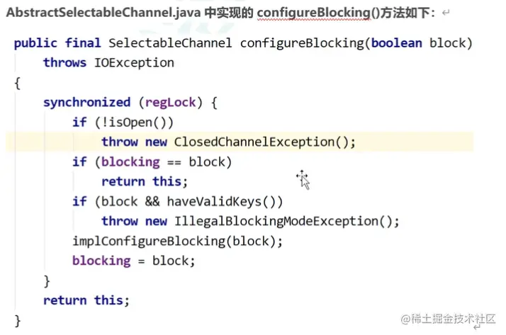 * 关闭通道后,任何进一步尝试对其调用 I/O 操作都将导致抛出ClosedChannelException 。