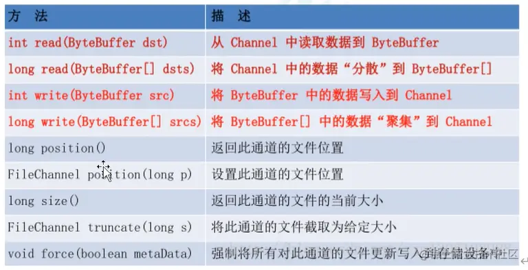 注意FileChannel.write0是在 while 循环中调用的。因为无法保证 write0方法一次能向FileChannel 写入多少字节,因此需要重复调用 write()方法,直到 Buffer 中已经没有尚未写入通道的字节。