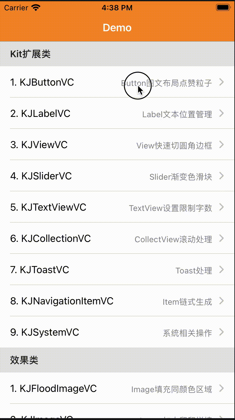 | Xib创建的View | Class | kj_viewFromXibWithFrame: |