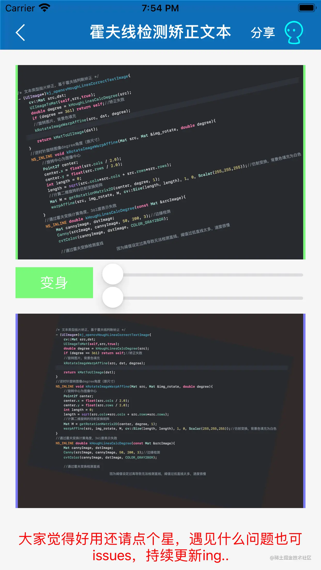 - OpenCV:图片处理,霍夫矫正,特征提取,形态学处理,滤镜处理,照片修复等等;