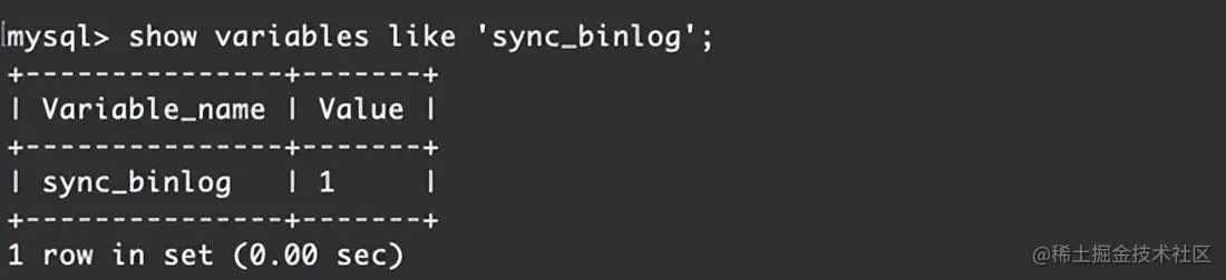 show variables like 'sync_binlog';