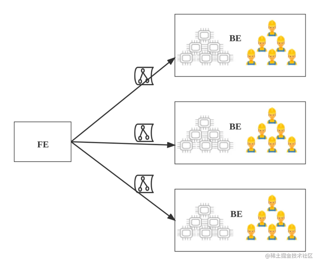 第三步: FE 将所有 Fragment Instance,一次性(all-at-once)投递给 BE,BE 执行 Fragment Instance。