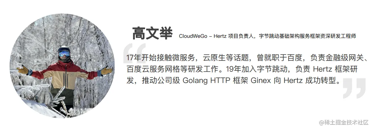 最后欢迎对 Hertz 感兴趣的同学积极参与到 CloudWeGo 社区中,我们一起完善 Hertz,共同建设 CloudWeGo!