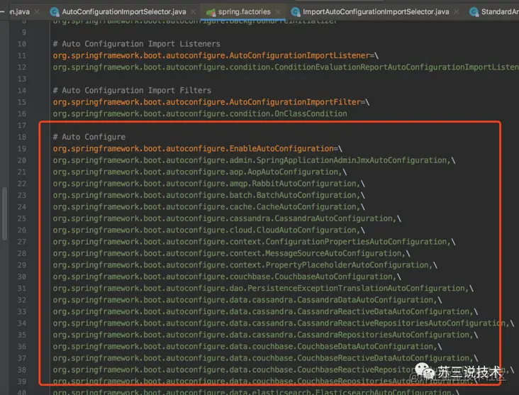 @EnableAutoConfiguration注解会引入AutoConfigurationImportSelector类。