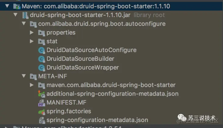 alibaba定义的druid-spring-boot-starter只有xxx-spring-boot-starter.jar文件,而没有xxx-spring-boot-autoconfigure.jar文件。