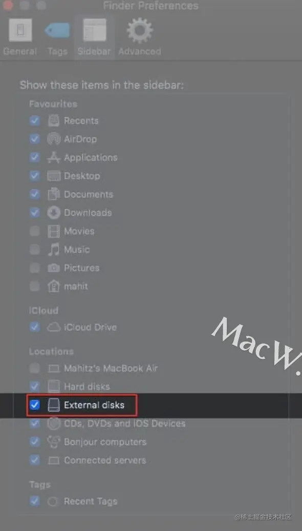 2、在 Finder 偏好设置中启用外部光盘