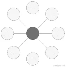中介模式不仅在生活中应用广泛,还大量存在于软硬件架构中,例如微服务架构中的注册发现中心、数据库中的外键关系表,再如网络设备中的路由器等,中介的角色均发挥了使对象解耦的关键作用。不管是对象引用维护还是消息的转发,都由处于中心节点的中介全权负责,最终架构出一套类似于星形拓扑的网络结构,如图所示,极大地简化了各对象间多对多的复杂关联,最终解决了对象间过度耦合、频繁交互的问题,请参看中介模式的类结构