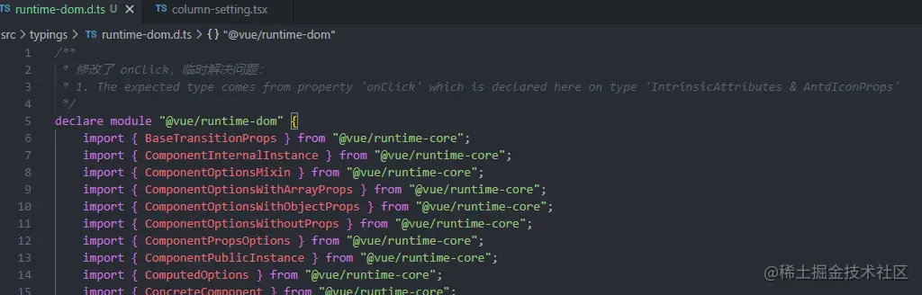 于是,我就尝试找问题源runtime-dom.d.ts有没有什么问题,先仔细观察下报错信息,