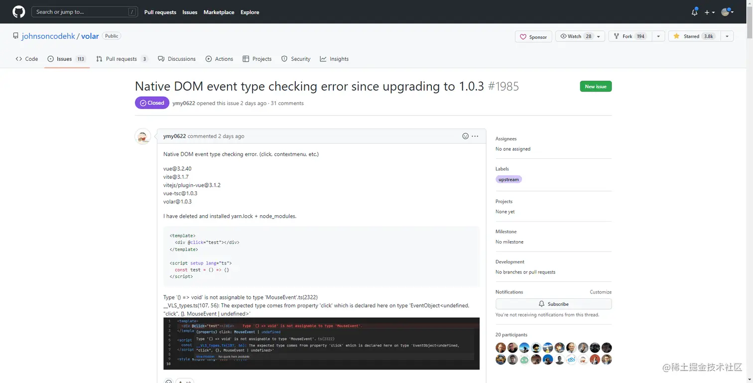 Volar 仓库中相关 issue 还是 2 天前提出的,说明这个问题还是蛮新的。
