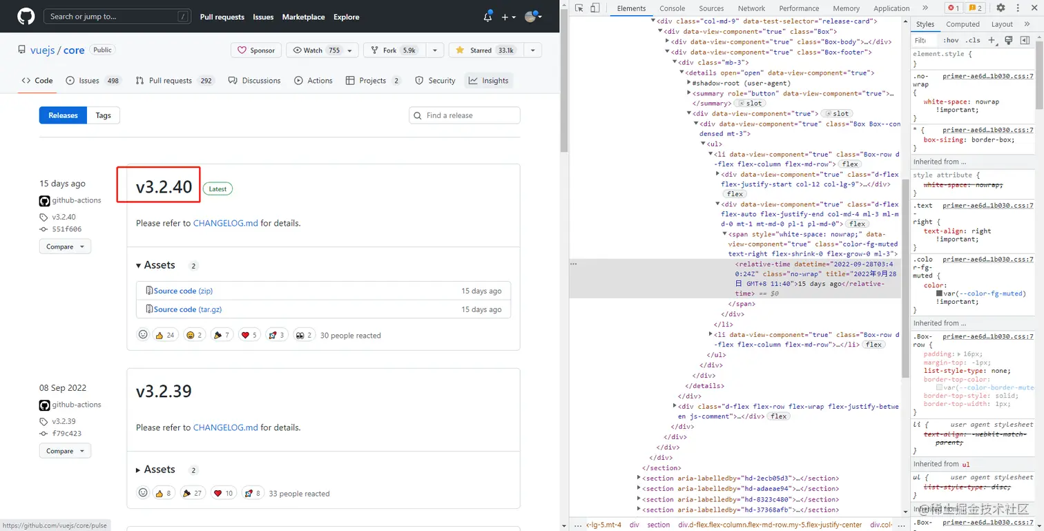 于是,我去看了一下 Vue 的最新版本,发现 3.2.41 还没有发布,可能也正在解决这个问题吧!