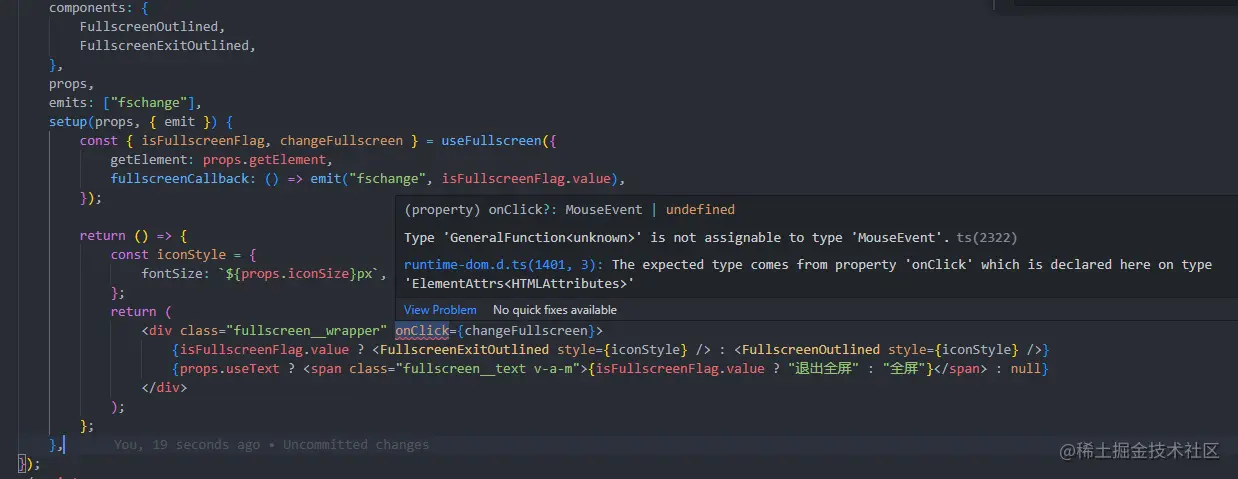 runtime-dom.d.ts(1401, 3): The expected type comes from property 'onClick' which is declared here on type 'IntrinsicAttributes & AntdIconProps'