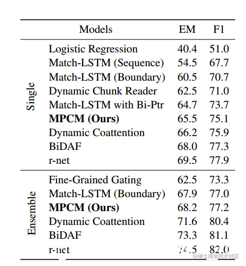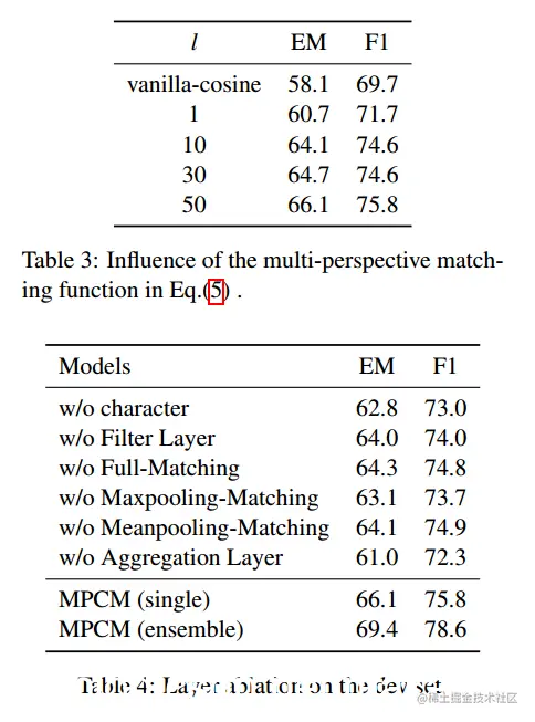 对于表1中的示例,正向Full-Matching向量对于问题#1非常有用,因为我们只需要匹配整个问题的左上下文。同样,向后Full-Matching向量对于问题2非常有用。然而,对于问题3,我们必须使用上颌匹配和均值匹配策略,因为左边和右边的上下文都需要部分匹配问题。