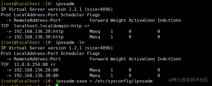 ipvsadm-save > /etc/sysconfig/ipvsadm #保存策略