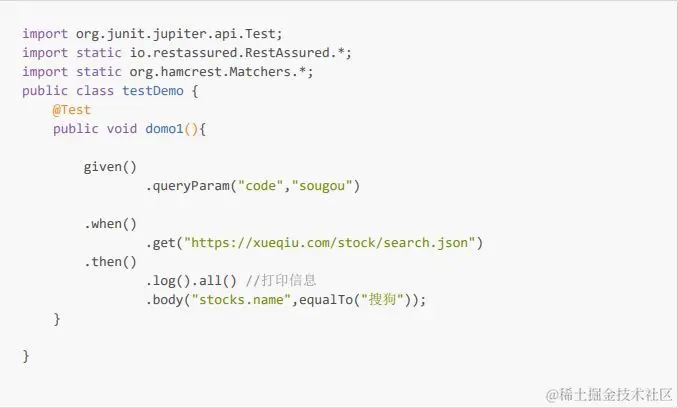 现在,我们使用 Rest-Assured 来编写一个简单的测试程序调用相同的Get请求: