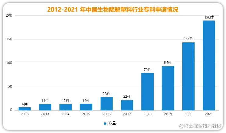 如下表是整理至新浪网的《2022 年中国生物降解塑料行业发展环境 PEST 分析》的技术环境分析,可以看出,有关生物降解塑料相关技术专利申请数量猛增。