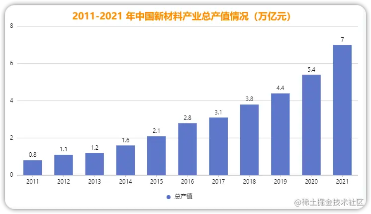 如下表是整理至新浪网的《2022 年中国生物降解塑料行业发展环境 PEST 分析》的经济环境分析,可以看出,近年来中国新材料产业总产值逐年增加,呈现上涨的趋势。