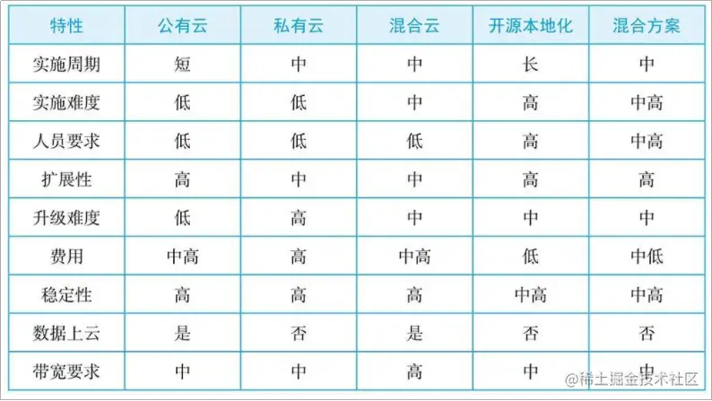 可以根据自身的情况和不同方案的优缺点选择合适的选型方案政务、金融行业一般对数据本地化要求较高,可以考虑选择第二个和第三个方案。在实际选型时,很可以采用混合解决方案。比如,底层基础设施、虚拟化和容器使用商业解决方案,数据中台和应用层采用开源框架。