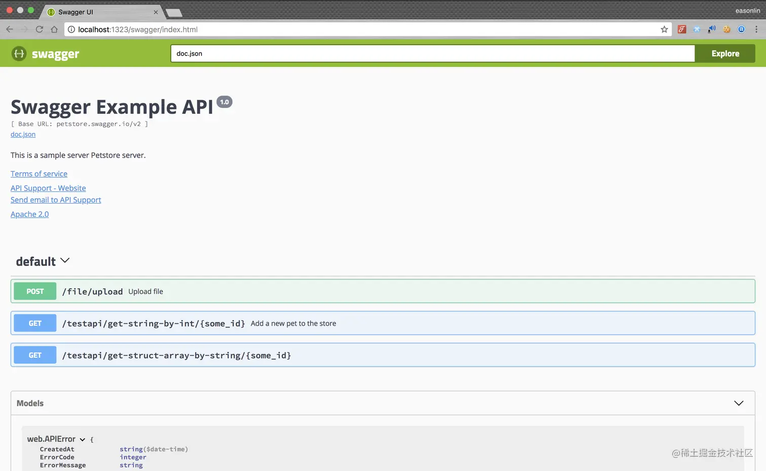 http://localhost:1323/swagger/index.html 换成你实际的ip和端口号