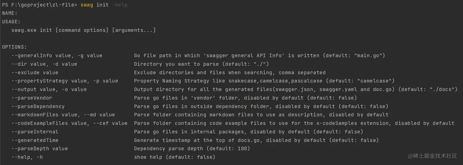 如果main.go文件不在根目录下,可使用 -g 参数指定,详细参数可使用swag init --help查看。
