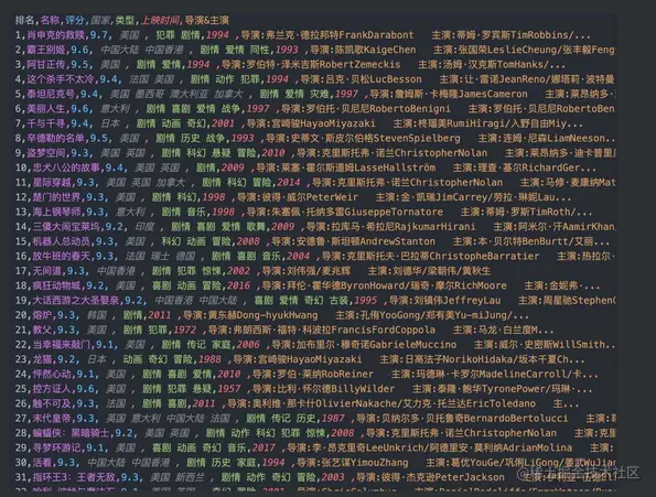 如此一来,首页的所有内容被解析出来,并被赋值成了一个个 Doubanmovie250Item。
