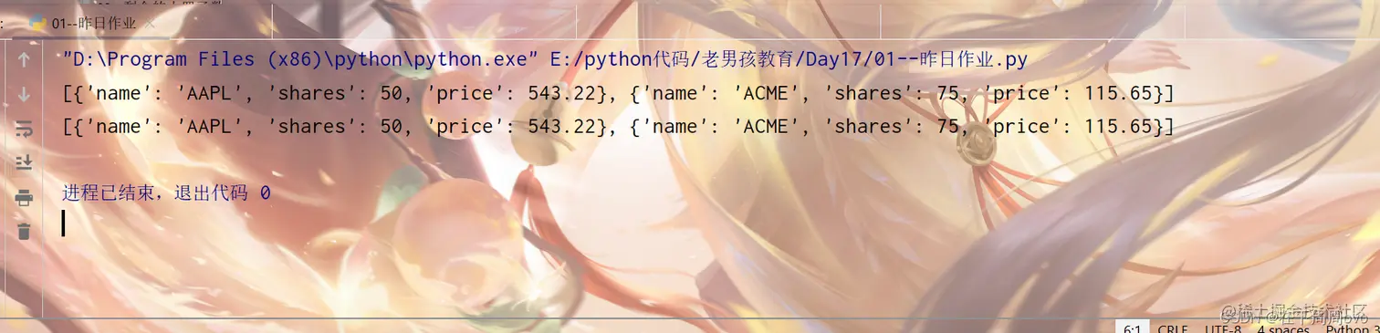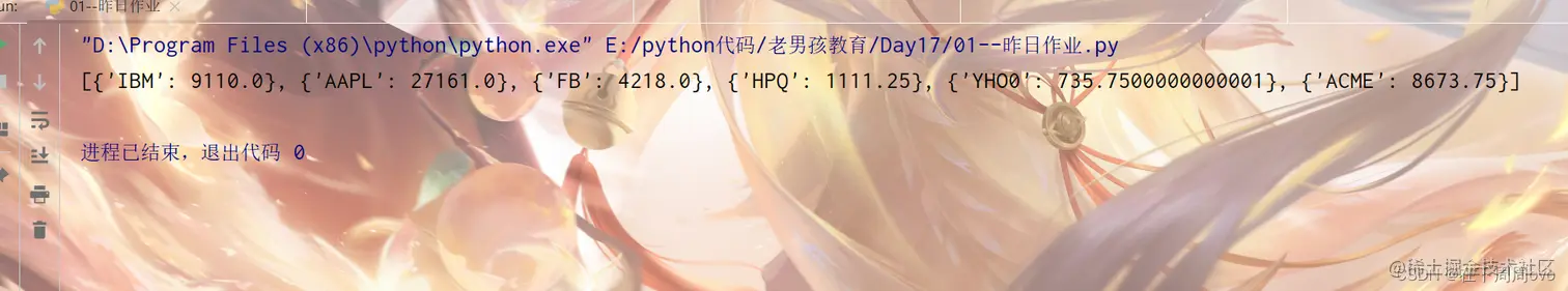 如下,每个小字典的name对应股票名字,shares对应多少股,price对应股票的价格
