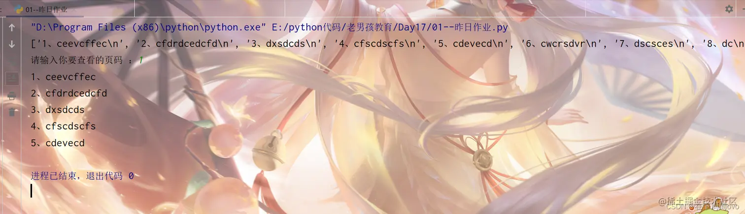 随意写一个有20行以上内容的文件,要求运行程序,先将内容读到内存中,用列表存储。接收用户输入页码,每页5行,仅输出当页的内容