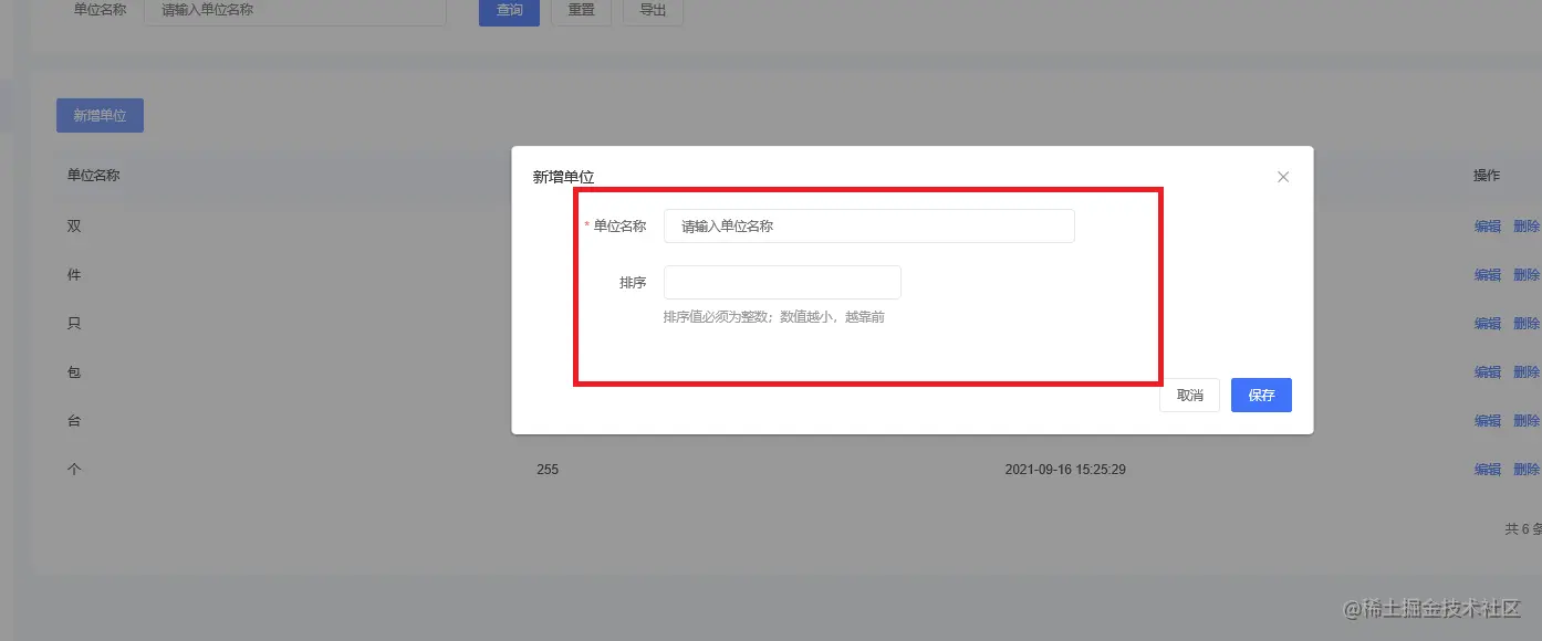 商品单位是我们通常说的计价单位,新增商品单位需要填写单位名称、单位排序字段,如下图所示: