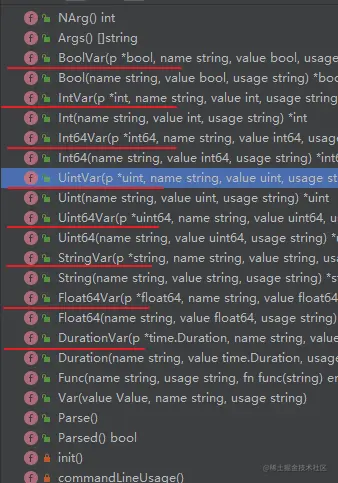 在我们的代码中,我们可以看到 flag 包他支持这么多数据类型的注册,如下: