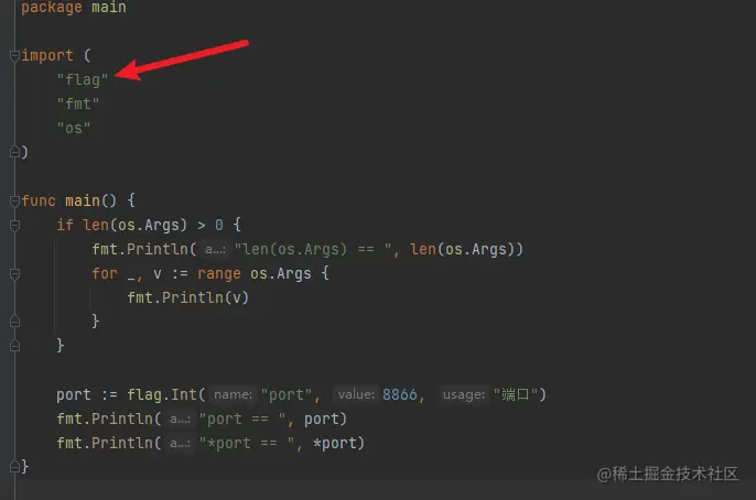 咱们在程序中使用 flag 包,定义一个端口